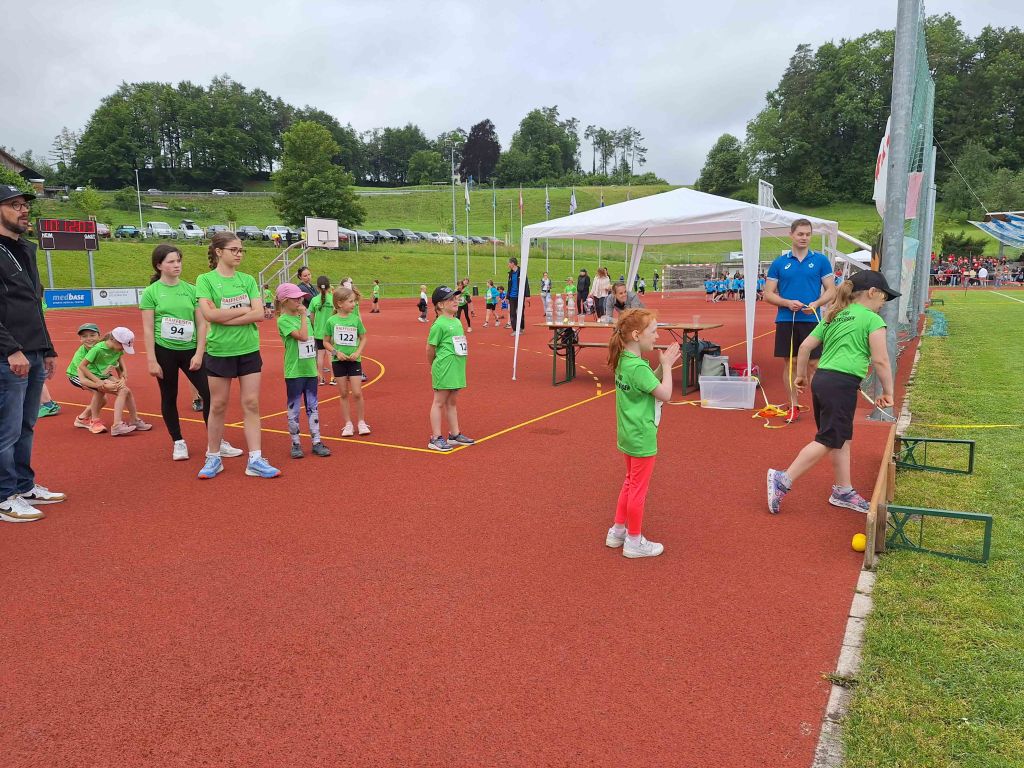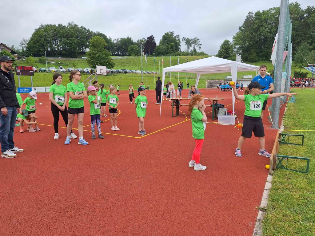Dreissig turnbegeisterte Jugikinder besammelten sich an diesem Samstagmorgen in der Sportanlage Kellen. Nach dem Aufwärmen gings auch schon los mit dem Sprint, weiter mit Weit- oder Hochsprung, danach massen sich die Kinder beim Ballwurf oder Kugelstossen. Der Ablauf war von der Jugi Rorschacherberg sehr gut organisiert. Es gab keinerlei Wartezeiten bei den verschiedenen Disziplinen. So hatten wir schon um 10 Uhr eine grössere Pause, bis es weiter ging mit dem 1000m-Lauf. Lautstark angefeuert von den jüngeren Jugikindern und den Eltern starteten die älteren Kinder um 11 Uhr mit ihrer letzten Disziplin.