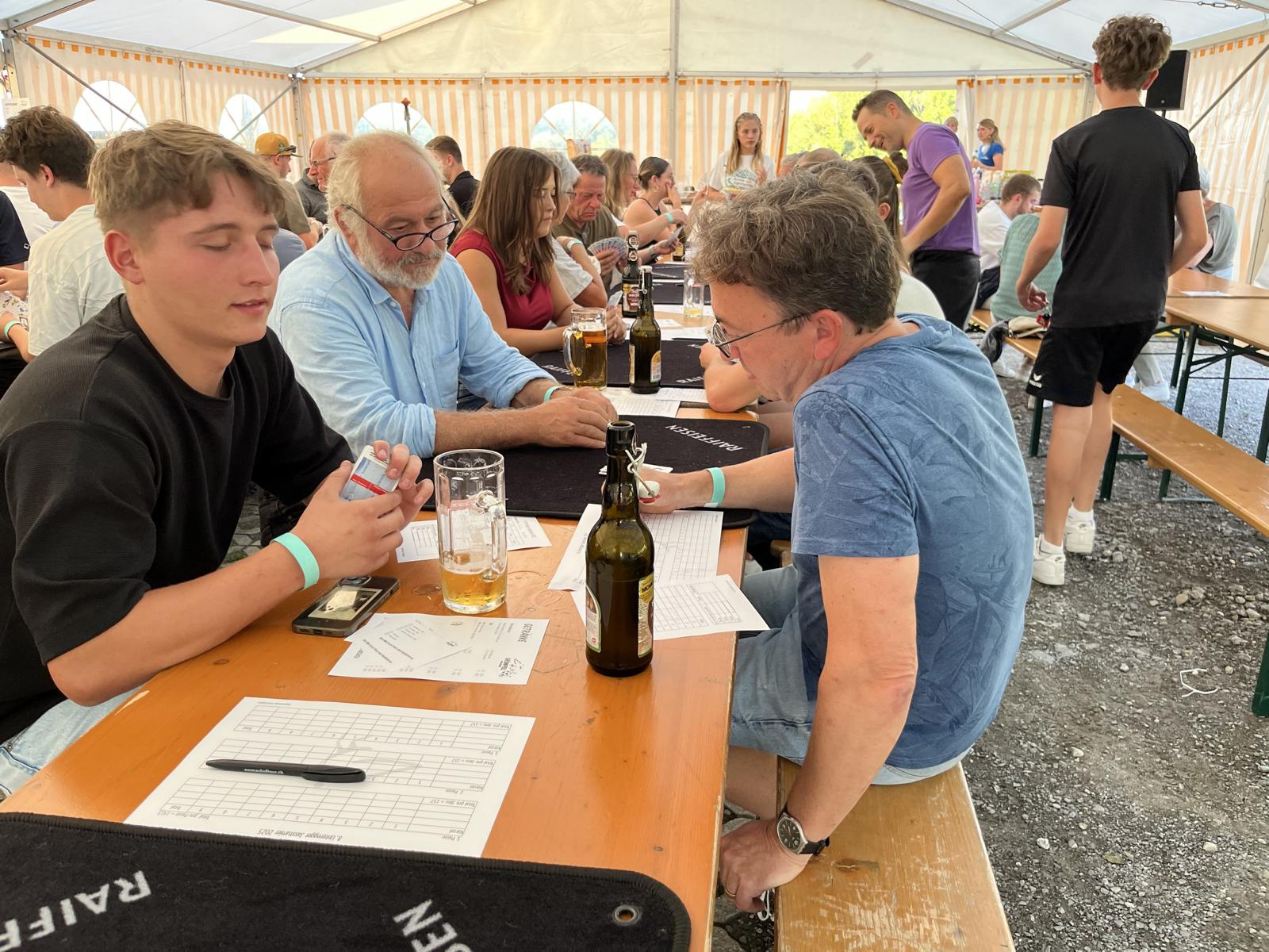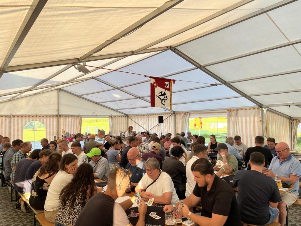 Auf die Person genau die gleiche Anzahl wie letztes Jahr starteten als Teilnehmende am Jassturnier in das Festwochenende. 54 Jasserinnen und Jasser hofften auf das grosse Kartenglück, um es mit mehr oder weniger Spielgeschick zum Erfolg zu bringen. Die Frage, ob der Vorjahressieger Adrian Egger nach seiner Fussballerkarriere nun voll auf die Karte «Jassen» setzen würde, war spätestens bei der Rangverkündigung beantwortet. Sein zehnter Rang ist wohl nicht als Bekenntnis für eine Karriere als Profijasser zu werten. Dafür gab Egger prompt und unerwartet das Comeback auf dem grünen Rasen.