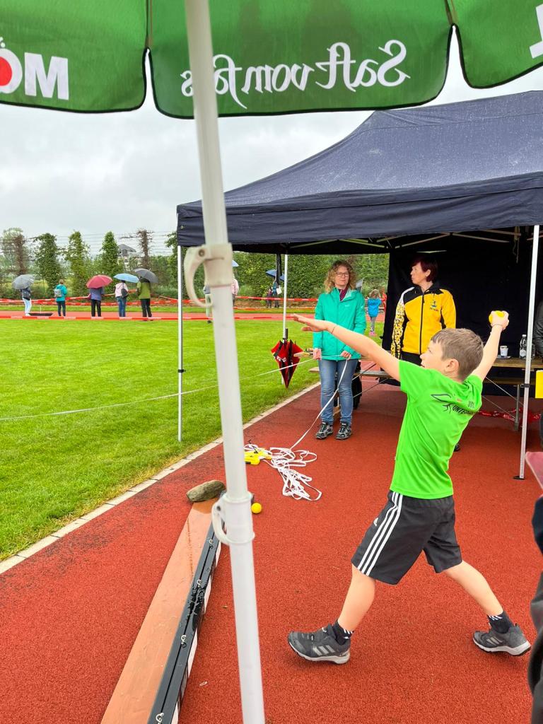 Schon um 7.30 Uhr besammelten sich 22 motivierte Kinder der Jugi Untereggen beim Festzelt auf dem Sportplatz in der Kellen Goldach. Aus vierzehn Vereinen traten fünfhundert Kinder gegeneinander an. Nach der Verteilung der Startnummern und dem Einwärmen gings auch schon los! Ballwurf, Sprint, Weitsprung, Kugelstossen und für die Grösseren der 1000m-Lauf, den sie mit Bravour meisterten. Die Power und Begeisterung der Kinder waren herrlich. In der grossen Pause zwischen Mittagessen und der Riegenstaffette konnten sich die Kinder beim Freizeitwettkampf verweilen oder man gönnte sich eine Glace.